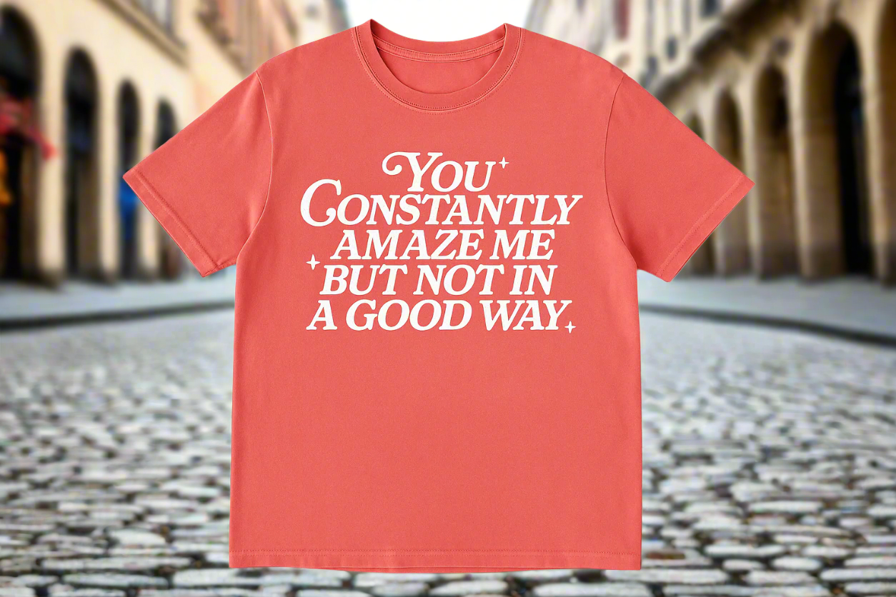 For the moments that leave you shaking your head, the Constantly Amaze Me But Not in a Good Way Tee combines humor, comfort, and durability in one standout design. Made from 6.1oz ring-spun cotton, it’s your new go-to casual statement piece.