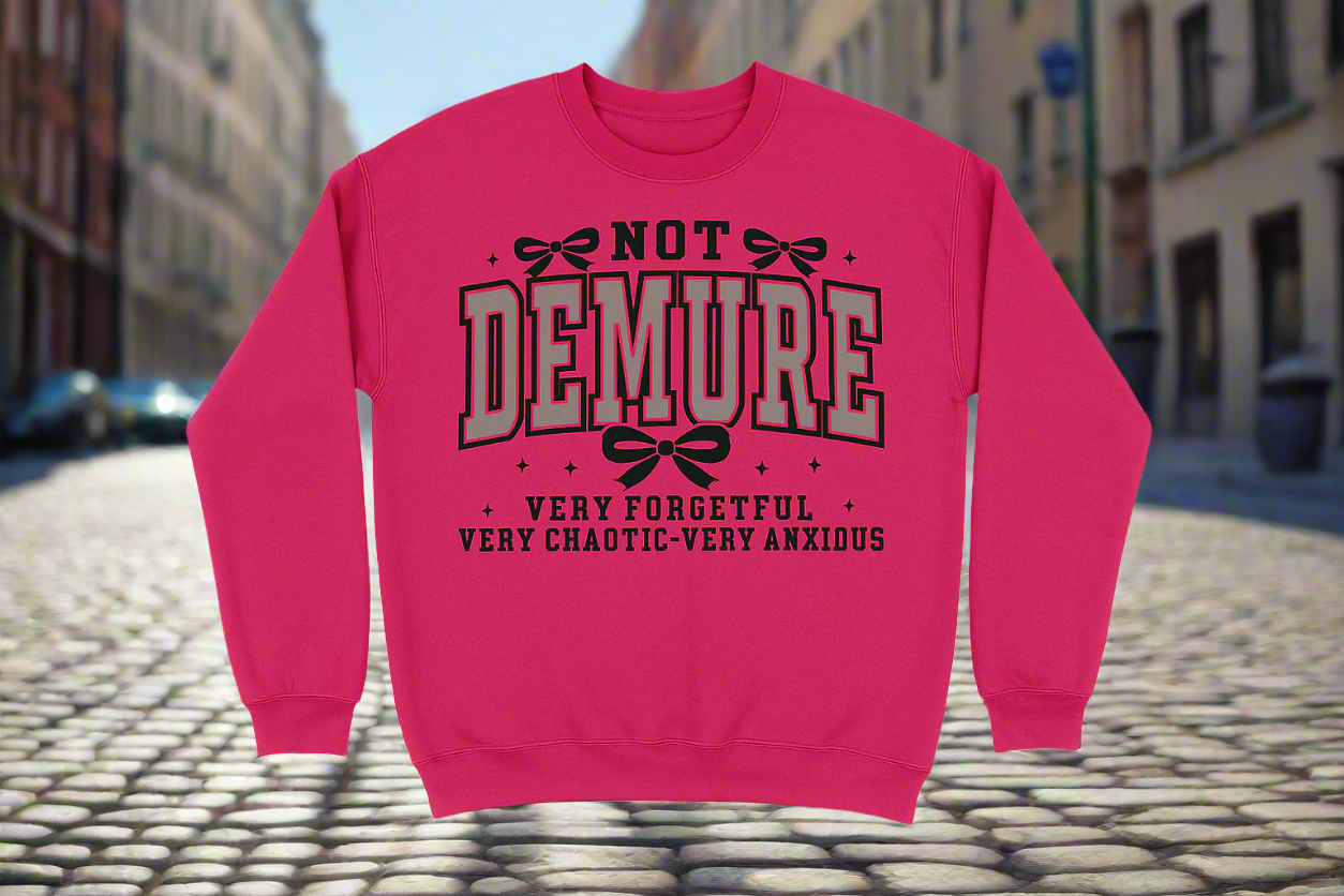 Stand out effortlessly with the Not Demure Very Distracted Sweatshirt. This statement piece combines 8.0oz cotton-poly blend comfort with playful attitude for everyday wear or casual outings.